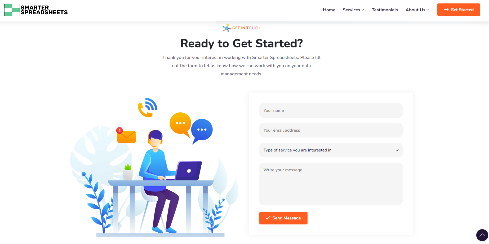 The primary goal for this website was to give Smarter-Spreadsheets a web presence that describes all of the services they offer. I made a main webpage that immediately tells visitors what the service the site provides in the hero, then describes each sub-service below, with testimonials, a bit about the company, and a call to action. The sub-pages describe the services available in more detail with examples and videos to show how it works.